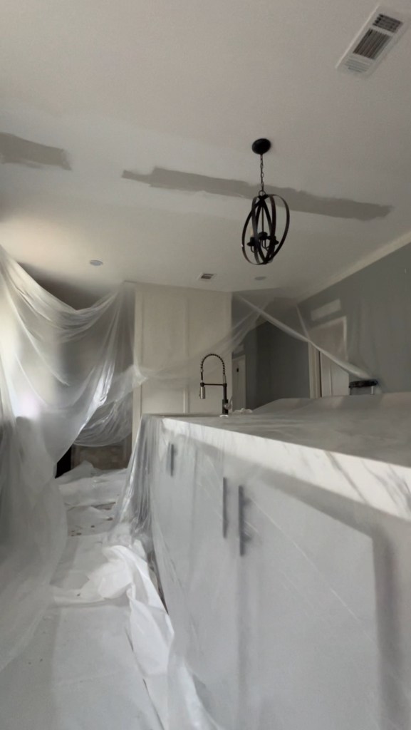 Like this crack that appeared in the kitchen ceiling. It’s pretty common to have cracks from everything shifting during the move and it’s also an easy fix. The contractor is actually working on patching that right now, and you can’t even tell it was ever there.