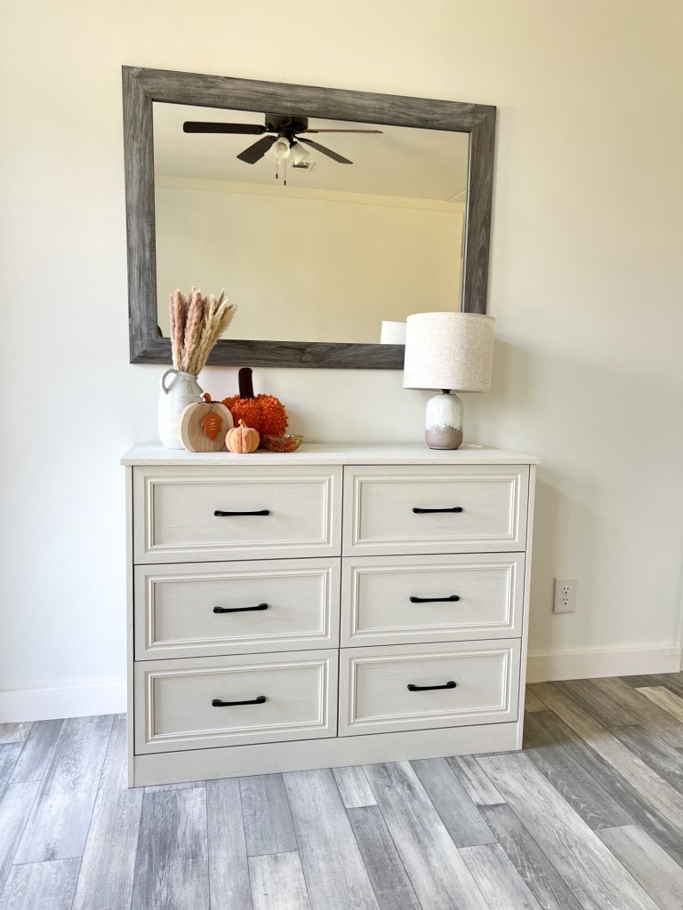 We’re slowly adding new furniture and decor to our new home, checkout this beautiful dresser from Vabches it’s a mix of modern and farmhouse style and fits our home so well. I styled it with fall decor, it comes in 5 different colors, this one is the white!