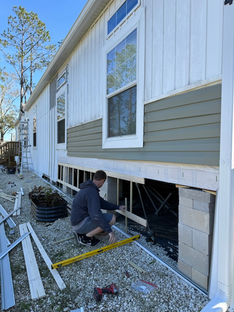 And we’re just cutting down the original skirting and putting it back up, so no animals get under our home, but we do plan to add a brick skirt soon.