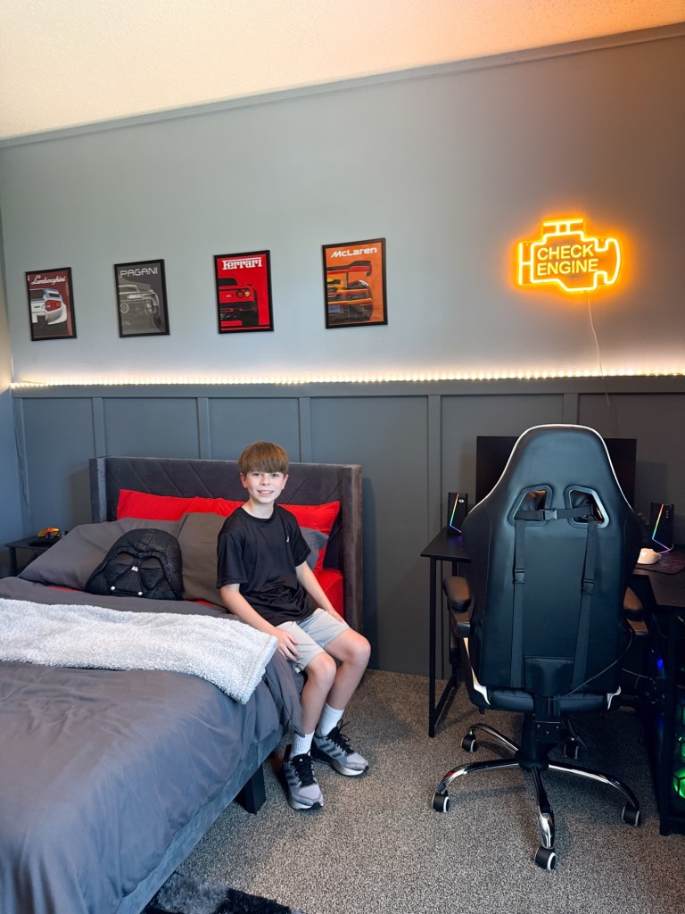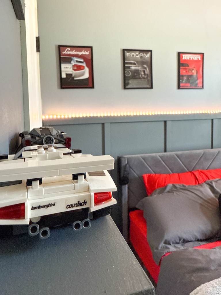 We just finished giving Miles’ room a fresh new look! He requested a Supercar theme bedroom with ferrari red sheets. Checkout the before and all the demo here: