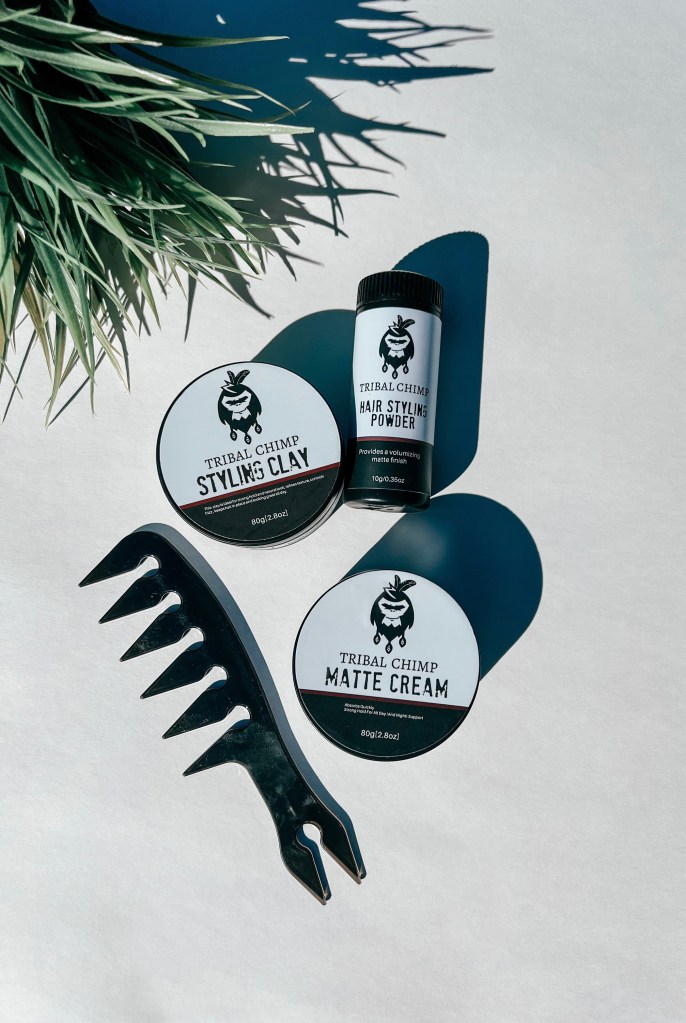 Miles’ hair is looking fresh thanks to these products from Tribal Chimp!