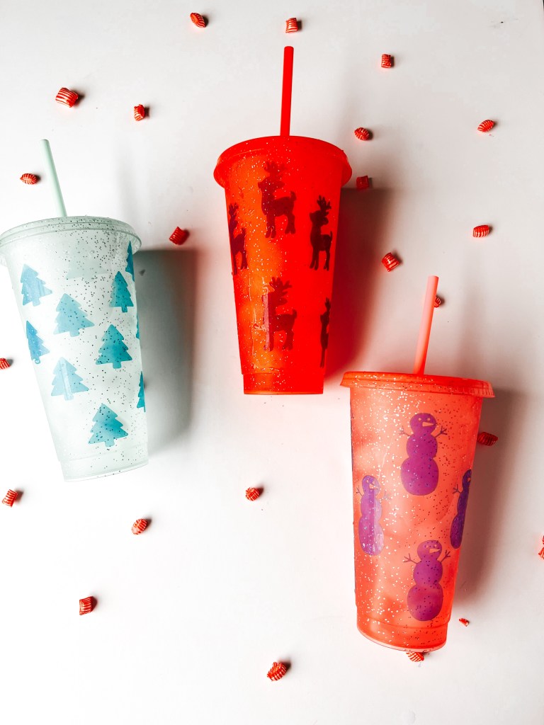 Khava sent me their Thermochromic vinyl to try, it changes color from white to blue at 15 degrees Celsius! I wasnāt sure what to make until I found these cute sparkle tumblers. Iām going to fill them with candy and gift cards for an easy teacher gift š and Iām definitely keeping one for myself š