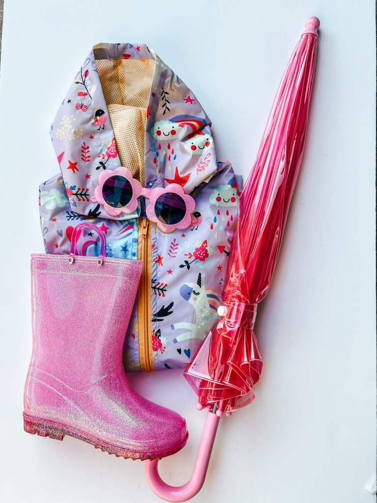 Spring style with rain boots, a cute umbrella and a sweet rain jacket! What I love most is that the jacket is light weight and breathable, very important in the Florida heat!