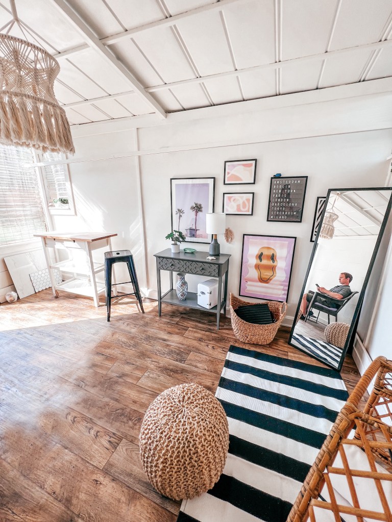 Do you have a workspace at home? A couple months ago we renovated the outside of this rundown shed that came with our property, I wanted to turn it into a gym / office, but after getting everything in here I decided it was too small to also be a gym. It’s ok though, we have the other building that has plenty of space for a home gym. Anyway, I love the way it turned out!! Ultimately I’d have one of those cute velvet couches, but my patio chairs are filling that void right now. Tagged most of the stuff below but I also linked it on LTK Happy Friday!! 🤸♀️🥂💗✨